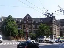 The YMCA building (formerly YMCA theater and sometimes Dukla), dating to 1921,[4] can be found here. Nearby stands a building that has been under construction for some years, which was to be 34 floors high upon completion. As of April 2007, only 8 above-ground levels have been completed, and it remains today in this unfinished state.