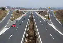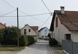 Folk tradition says that a castle stood on the hill above the hamlet of Soteska and was destroyed by the Ottomans, but no trace of the structure remains today.[1][2] Šentjakob ob Savi was a ferry point across the Sava River until 1584, when a bridge was built to serve the postal connection between Graz and Venice.[2] The postal route was relocated via Kamnik in 1717 because of frequent flooding of the Sava.[1][2] A part-time school was established in Šentjakob ob Savi in 1788, and regular schooling started in 1869.[1][2] School was held in the sexton's house until 1903, when a schoolhouse was built.[1] Before the Second World War, weaving straw was a traditional economic activity in the village, where they also produced tote bags made of straw.[1] This activity was given up due to competition from Tyrol.[2] The hamlet of Soteska was formerly an independent settlement, but was annexed to Šentjakob ob Savi in 1953,[6] before Šentjakob ob Savi itself was annexed by the City of Ljubljana in 1984.[6]