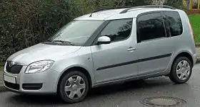 The Škoda Roomster (Type 5J) is a small family car manufactured and marketed by Škoda Auto from 2006 to 2015 over a single generation with a single intermediate facelift. It has a five-door, five passenger, front-engine, front-wheel drive, high-roof design and has been described as a hatchback,[3] an estate car, or a multi-purpose vehicle.[4] Styled by Thomas Ingenlath and Peter Wouda, the Roomster premiered at the 2006 Geneva Motor Show) as the first car marketed after Volkswagen Group's takeover of Skoda, sharing the A4 (PQ34) platform and components with the second generation Škoda Fabia.[5]