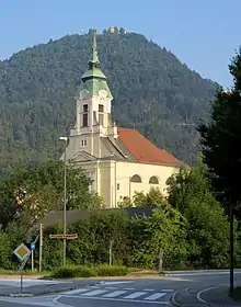The church in Šmartno pod Šmarno Goro is dedicated to Saint Martin. It was mentioned in 1296 as the seat of an independent parish. The current structure was created in 1842 by the master builder Matej Medved (1796–1865) according to plans by the engineer Simon Foyker from Ljubljana. The church contains paintings by Matija Bradaška (1852–1915) and Janez Šubic. The chancel was painted by Matej Langus (1792–1855), and the altars are the work of Andrej Rovšek Sr. (1836–1903).[1]