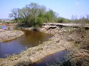 There are rare plant species, growing on the riparian meadows, such as star gentian, Conioselinum tataricum, Campanula bononiensis, Orchis militaris. Common kingfishers nest on the scarps, and Eurasian otters live in the river water.[1]