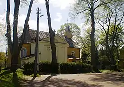 Šventybrastis ('sacred ford', formerly Russian: Свентобросць, Polish: Świętobrość)[1] is a village in Kėdainiai district municipality, in Kaunas County, in central Lithuania. According to the 2011 census, the village has a population of 144 people.[2] The village is located on the left bank of the Nevėžis river, by the Brasta rivulet. There are a wooden church of the Transfiguration of Jesus (built in 1744), a monument for independence, four sacred oak trees (a nature monument),[3] a cemetery, a library. The Šventybrastis Landscape Sanctuary is located nearby, while the Lančiūnava-Šventybrastis Forest is some kilometres away from the village.