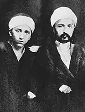 When ʻAbdu'l-Bahá was a young man, speculation was rife amongst the Baháʼís to whom he would marry.[5][42] Several young girls were seen as marriage prospects but ʻAbdu'l-Bahá seemed disinclined to marriage.[5] On 8 March 1873, at the urging of his father,[6][43] the twenty-eight-year-old ʻAbdu'l-Bahá married Fátimih Nahrí of Isfahán (1847–1938) a twenty-five-year-old from an upper-class family of the city.[44] Her father was Mírzá Muḥammad ʻAlí Nahrí of Isfahan an eminent Baháʼí with prominent connections.[lower-alpha 2][5][42] Fátimih was brought from Persia to ʻAkká after both Baháʼu'lláh and his wife Navváb expressed an interest in her to marry ʻAbdu'l-Bahá.[5][44][45] After a wearisome journey from Isfahán to Akka she finally arrived accompanied by her brother in 1872.[5][45] The young couple were betrothed for about five months before the marriage itself commenced. In the meantime, Fátimih lived in the home of ʻAbdu'l-Bahá's uncle Mírzá Músá. According to her later memoirs, Fátimih fell in love with ʻAbdu'l-Bahá on seeing him. ʻAbdu'l-Bahá himself had showed little inkling to marriage until meeting Fátimih;[45] who was entitled Munírih by Baháʼu'lláh.[6] Munírih is a title meaning "Luminous".[46]