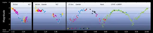 - Meech, Karen; et al. (20 November 2017). "Light curve of interstellar asteroid ʻOumuamua". ESO. European Southern Observatory. Archived from the original on 19 December 2019. Retrieved 21 November 2017.