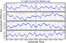 Delta Lupi is a Beta Cephei variable star that undergoes periodic pulsations. It has a single period of variability lasting 0.1655 days, or six cycles per day.[5] This is a proper motion member of the Upper Centaurus–Lupus sub-group in the Scorpius–Centaurus OB association, the nearest such co-moving association of massive stars to the Sun.[7]