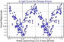 - Balona, L. A.; Aerts, C.; Božić, H.; Guinan, E. F.; Handler, G.; James, D. J.; Kaye, A. B.; Shobbrook, R. R. (November 2001). "Short period line profile and light variations in the Be star ω Orionis". Monthly Notices of the Royal Astronomical Society. 327 (4): 1288–1296. Bibcode:2001MNRAS.327.1288B. doi:10.1046/j.1365-8711.2001.04831.x. S2CID 119578276.