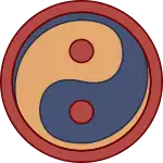 Ming period author Lai Zhide (1525–1604) simplified the taijitu to a design of two interlocking spirals. In the Ming era, the combination of the two interlocking spirals of the taijitu with two black-and-white dots superimposed on them became synonymous with the He tu or "Yellow River diagram" (河圖).[3] This version was reported in Western literature of the late 19th century as the "Great Monad",[4] and has been widely popularised in Western popular culture as the "yin-yang symbol" since the 1960s.[5] The contemporary Chinese term for the modern symbol is 太极兩儀图 "two-part Taiji diagram".