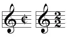 Examples of time signatures for alla breve