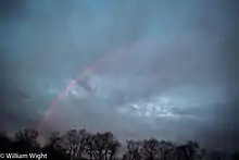A sleetbow forms in the same way as a typical rainbow, with the exception that it occurs when light passes through falling sleet (ice pellets) instead of liquid water. As light passes through the sleet, the light is refracted causing the rare phenomena. These have been documented across United States with the earliest publicly documented and photographed sleetbow being seen in Richmond, Virginia on December 21, 2012.[59] Just like regular rainbows, these can also come in various forms, with a monochrome sleetbow being documented on January 7, 2016 in Valparaiso, Indiana.