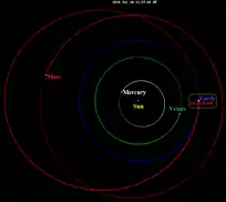 2011 UW158 orbits the Sun at a distance of 1.0–2.2 AU once every 2 years and 1 month (753 days). Its orbit has an eccentricity of 0.38 and an inclination of 5° with respect to the ecliptic.[1] Its observation arc begins with its official discovery observation by Pan-STARRS, as no precoveries were taken, and no prior identifications were made.[2]