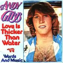 "(Love Is) Thicker Than Water" is a song performed by Andy Gibb, released in September 1977 as the second and final single from his debut album, Flowing Rivers. The song was his second single that topped the US Billboard Hot 100. It was mainly written by Barry Gibb, with help from Andy Gibb. The B-side of this song was "Words and Music" in the US, but "Flowing Rivers" in the UK.[1] It became a gold record.