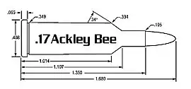 The .17 Ackley Bee is a wildcat centerfire rifle cartridge named after its designer, P.O. Ackley, and is a .218 Bee case necked down to .17 caliber with a squarer shoulder and less body taper. Being a rimmed case it was popular with single shot rifles such as the Martini Cadet and Low Wall Winchester.[2] The caliber is well suited to varmint hunting particularly where minimal pelt damage is required.