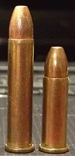 The .22 Winchester Short Magnum Rimfire, also called .22 ILARCO or .22 American,[2] was a rimfire cartridge designed for the American-180 rimfire submachine gun. At the time the cartridge was created, the design of the American-180 had been taken over by the Illinois Arms Company, Inc., hence the ILARCO name.