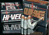 The .40 Super is a powerful automatic pistol cartridge developed in 1996 and introduced to the market by Triton Cartridge. The cartridge was co-developed by Fernando Coelho and Tom Burczynski.