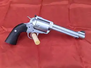 The .500 Maximum, also known as .500 Linebaugh Maximum and .500 Linebaugh Long, is a revolver cartridge developed by John Linebaugh. Only a small number of custom made 5-shot single action revolvers, such as the BMF .500 Maximum manufactured by Gary Reeder Custom Guns, the Ruger Bowen .500 Maximum manufactured by Bowen Classic Arms Corporation and revolvers manufactured by John Linebaugh or Jack Huntington, are being chambered for this round, with a barrel length of up to 6.5" with no muzzle brake or ports.