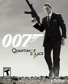 007: Quantum of Solace is a 2008 shooter video game published by Activision. It is based on the James Bond films Casino Royale (2006) and Quantum of Solace (2008). It was developed by Treyarch for PlayStation 3 (PS3) and Xbox 360, while Beenox developed it for Microsoft Windows and Wii. The game is mostly played as a first-person shooter, but occasionally switches to third-person. Eurocom developed a similar version for the PlayStation 2 (PS2), played solely as a third-person shooter. An entirely different version, developed by Vicarious Visions for the Nintendo DS, is also played from a third-person perspective.