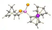A different type of ring breaking reaction can occur when Lawesson's reagent is reacted with a metal compounds such as a platinum dichloride bis-phosphine complex, in this case one molecule of MeOC6H4P(S)Cl2 is formed as a side product to the platinum complex ([Pt(S2P(S)C6H4OMe)(PR3)2]).[1]