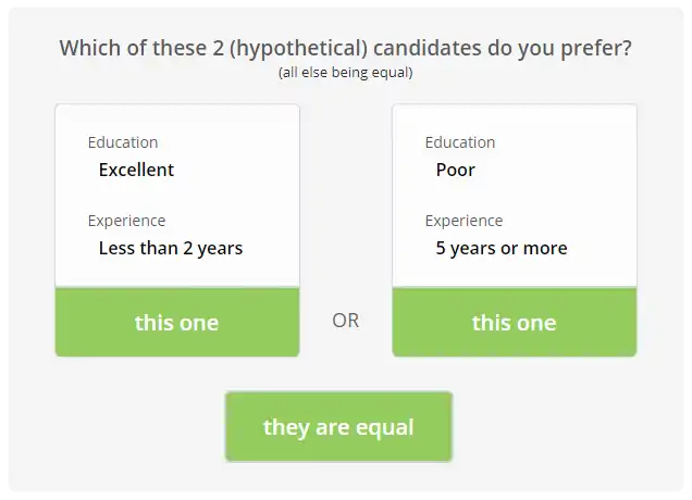 1000minds conjoint analysis surveys are for discovering consumers’ or other stakeholders’ preferences with respect to the relative importance – represented by ‘part-worth utilities’ or ‘weights’ – of the features or attributes characterizing products or other objects of interest (i.e., choice modelling, conjoint analysis and discrete choice).[4][5]