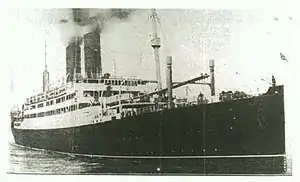 "... I had just finished supper and come onto 'B' Deck, at a point directly above the engine room when all of a sudden something struck the ship with a loud explosion. The boat seemed to be hurled entirely out of the water and trembled from one end to the other. The force of the explosion sent a column of water into the air that reached the top rigging. Several of us were directly in the path of this, receiving a thorough drenching. It was no time at all before the vessel listed sharply to starboard. This rendered the lowering of the lifeboats extremely difficult. All men immediately went to their assigned lifeboats, and, despite a natural state of excitement, perfect order prevailed. I was on the port side of 'A' Deck and five other members of the Squadron, who with a number of men from the 158th Squadron were supposed to have been lowered in one of the first boats. There ensued some difficulty, however, in launching the boat so we could do nothing but look overboard at the unfortunate ones fighting for their lives in the icy water. The cries were enough to make one stand aghast.[1]