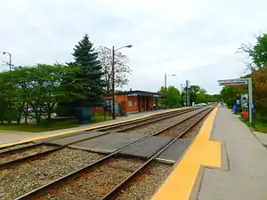 103rd Street–Beverly Hills is one of five Metra stations within the Beverly Hills neighborhood of Chicago, Illinois, along the Beverly Branch of the Rock Island District Line. The station is located at 10301 South Walden Parkway on the corner of 103rd Street, 12.8 miles (20.6 km) from LaSalle Street Station, the northern terminus of the line.[2] In Metra's zone-based fare system, 103rd Street is in zone C. As of 2018, 103rd Street–Beverly Hills is the 71st busiest of Metra's 236 non-downtown stations, with an average of 734 weekday boardings.[1]