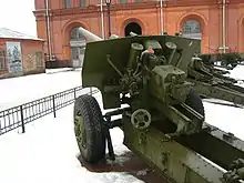 The 107 mm divisional gun M1940 (M-60) (Russian: 107-мм дивизионная пушка образца 1940 года (М-60)) was a Soviet artillery piece, developed in the late 1930s in order to provide Soviet divisional artillery with a powerful field and anti-tank gun. The weapon entered production in 1940, but soon after the outbreak of the German-Soviet War, production ceased; only a limited number of pieces were built. These guns saw service in the Red Army during the war.