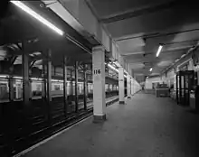 The 116th Street station opened on October 27, 1904, as one of the original 28 stations of the New York City Subway from City Hall to 145th Street on the West Side Branch.[5][8]: 186 The opening of the first subway line, and particularly the 116th Street station, helped contribute to the development of Morningside Heights and Harlem.[2]: 8