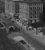 Columbia University first requested the demolition of the station's original entrance in Broadway's median in 1954, ahead of the Columbia University Bicentennial.[29] The university brought up the issue again at a meeting of the New York City Board of Estimate in 1963,[30] after a student was killed while crossing the street.[29] The kiosk was seen as a safety hazard, with two deaths and several accidents occurring at the kiosk from 1962 to 1964. Sixty-eight hundred students and faculty members signed a petition to remove the kiosk in February 1964.[31] On March 13, 1964, the New York City Board of Estimate voted to allocate $600,000 (equivalent to $5,242,275 in 2021) to demolish the entrance and replace it with two new sidewalk entrances as part of the 1964–1965 City budget. The New York City Department of Highways had requested that funds be allocated to this project at the request of Columbia University. The New York City Transit Authority had not yet drawn up plans for the project.[30] Bids for the kiosk's demolition were initially scheduled to be solicited in July 1964.[32] That October, a NYCTA spokesperson announced that the demolition of the entrance would be delayed until the following spring. Work on the project had been expected to commence in December 1964. The NYCTA was expected to complete the design of the project in early 1965, after which the project could be put out for bids.[33]
