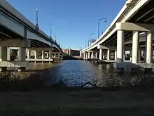 The 11th Street Bridges are a complex of three bridges across the Anacostia River in Washington, D.C., United States. The bridges convey Interstate 695 across the Anacostia to its southern terminus at Interstate 295 and DC 295.[1] The bridges also connect the neighborhood of Anacostia with the rest of the city of Washington.[1]