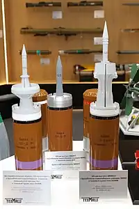 The 9K112 Kobra (NATO reporting name is AT-8 Songster) is also fired from the 125 mm main guns of the T-64 and T-80 series of tanks[15]
