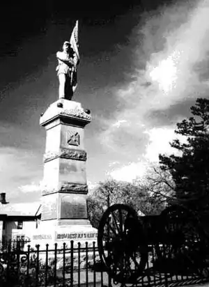 Organized at Camp Kelly on the fairgrounds in Hudson, New York (a marker can be found today in the town indicating the location of the camp). The regiment was mustered into service on September 4, 1862, and left for Washington D.C. September 5, 1862, aboard the steamship Oregon which took them to New York City. From here the regiment rode aboard railroad cars to Baltimore. Camp Millington, where the regiment practiced drill, was set up just outside Baltimore. The 128th's first attempt to engage the enemy took them on a rapid jaunt to Gettysburg in an effort to confront General J.E.B. Stuart's Confederates. This proved uneventful however as Stuart retreated upon learning of the Union Army's approach; History would not be made in Pennsylvania until the following year.