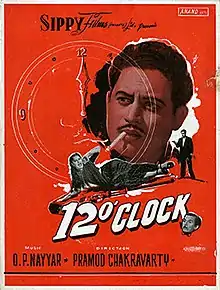 12 O'Clock is a 1958 Bollywood Thriller and Mystery film starring Guru Dutt, Waheeda Rehman and Rehman.[1] It was produced by G.P. Sippy and directed by Pramod Chakravorty.[2][3] It was listed in Best Bollywood Noirs of 1950s by Filmfare, citing, While Guru Dutt is as effective as ever and Waheeda looks suitably grief-stricken and confused, the film belongs to Rehman, who plays Bani's manipulative brother-in-law to perfection.[4]