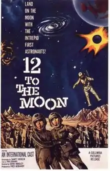 12 to the Moon is a 1960 independently made American black-and-white science fiction film, produced and written by Fred Gebhardt, directed by David Bradley and starring Ken Clark, Michi Kobi, Tom Conway and Anna-Lisa. The film was distributed in the U.S. by Columbia Pictures as a double feature with either Battle in Outer Space or 13 Ghosts, depending on the local film market.