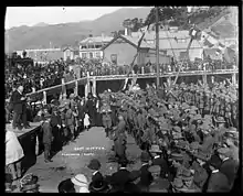 In 1920 Major General Sir Edward Chaytor, Commandant of the New Zealand Military Forces, was appointed as Honorary Colonel of the regiment.[9][10] A reorganisation of the New Zealand Military Forces in 1921 saw the seventeen territorial regiments amalgamated into four larger regiments, similar to those of the New Zealand Expeditionary Force. The 12th (Nelson and Marlborough) Regiment amalgamated with the 13th (North Canterbury and Westland) Regiment to form the 2nd Battalion, Canterbury Regiment, while the 1st (Canterbury) Regiment and 2nd (South Canterbury) Regiment amalgamated to form the 1st Battalion.[11] The amalgamation was short lived and in 1923 the 2nd Battalion was redesignated as the 1st Battalion, Nelson, Marlborough and West Coast Regiment.[12]