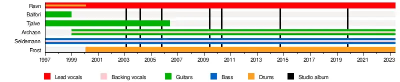 - Olav "Ravn" Bergene – lead vocals (1997–present), drums (1997–2000)
