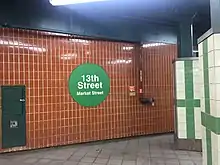 ![]() Subway-Surface Trolley platform at 13th Street station | ||||||||||||||||