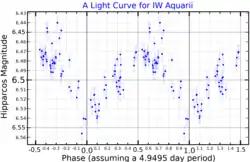 14 Aquarii (abbreviated 14 Aqr) is red giant star. 14 Aquarii is the Flamsteed designation; it also bears the variable star designation IW Aquarii. It is a semiregular variable with an amplitude of a tenth of a magnitude, and shows variations on a timescale of just one day.[4]
