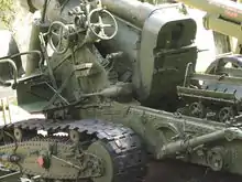 152 mm gun M1935 (Br-2) (Russian: 152-мм пушка обр. 1935 г. (Бр-2)) was a Soviet 152.4 mm heavy gun, produced in limited numbers by the Barrikady Plant in Stalingrad in the late 1930s. The most unusual feature of the gun was its tracked carriage, shared by a number of Soviet heavy artillery systems of the interwar period. Despite a number of drawbacks, most notably limited mobility and short service life of the barrel, the weapon was employed throughout the German-Soviet War; an upgraded variant with wheeled carriage, Br-2M, remained in service at least until the 1970s.