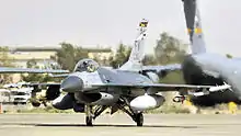 The squadron started receiving their first F-16C/D Fighting Falcon aircraft in 1991. These were of the block 25 type, replacing the venerable F-4E in the air defense and attack roles with the retirement of the Phantom. The transition process was quite fast since the first F-16s arrived in October 1991 and the last F-4 flight was on 21 January 1992. The first four F-16Cs were from the 50th Tactical Fighter Wing, Hahn Air Base, Germany. Twenty additional aircraft were received: twelve more from Hahn Air Base, seven from 363rd Fighter Wing, Shaw Air Force Base, South Carolina, and one from the 184th Fighter Group, McConnell Air Force Base, Kansas when the 184th converted to B-1B Lancer bombers.