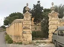 During the epidemic, the deceased were usually not buried in churches as was common practice at the time.[19] Burials were held in various locations, particularly in specially-established extramural cemeteries, around fortifications or abandoned churches. Inhabitants of Valletta were buried in a cemetery on the Isolotto (now known as Manoel Island), while those of Cospicua and Senglea were buried in cemeteries outside the cities' fortifications. The deceased of Birgu were buried at Il-Hisieli.[6] People were also buried at a cemetery in Cospicua known as Iċ-Ċimiterju tal-Infetti (Cemetery for Infectious Diseases), which still exists today.[20]