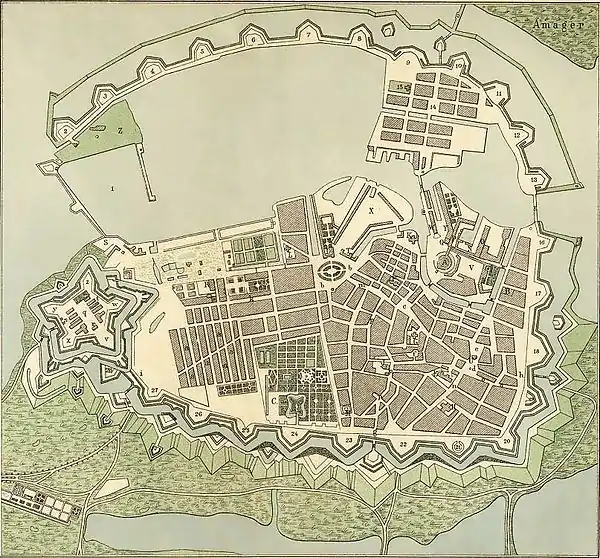 - A. Copenhagen Castle, the royal castle, demolished in 1731 to make way for the first Christiansborg Palace