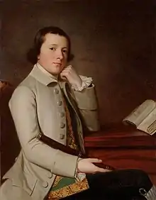 11. John Grey, third son of the Earl of Stamford, wears a brown coat and waistcoat over a linen shirt, 1766.
