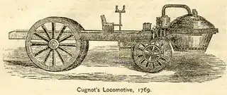 Cugnot's first steam-wagon, or fardier, of 1769.