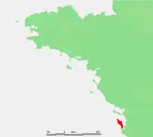 ![]() The Marais breton-vendéen is situated in the Vendéen zone of the south west Armorican Massif, to the east of the island of Noirmoutier. Its bedrock comprises Quaternary sedimentary rocks.[1] | |