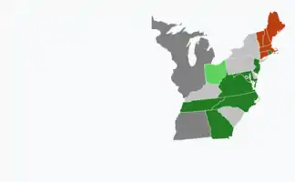 | Ohio | 11 January 1803[38] | New state | Edward Tiffin (Democratic-Republican), 5,377 (90.43%)[lower-alpha 5][lower-alpha 6] Benjamin Ives Gilman (Federalist), 246 (4.14%) Arthur St. Clair (Federalist), 234 (3.93%) Bezaleel Wells (Federalist), 89 (1.50%) Scattering, unknown[lower-alpha 7] [47][48][49][4][50][51][52][53][54] | ||