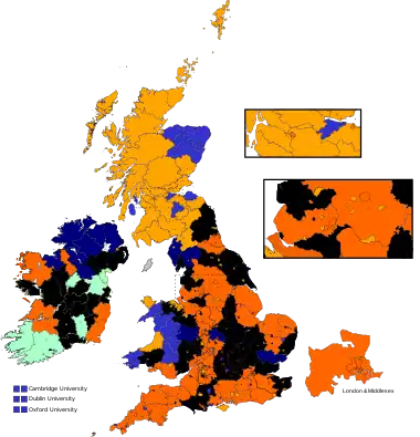 For the distribution of constituencies in the unreformed House of Commons, before this election, see the 1831 United Kingdom general election. Apart from the disenfranchisement of Grampound for corruption in 1821 and the transfer of its two seats as additional members for Yorkshire from 1826, there had been no change in the constituencies of England since the 1670s. In some cases the county and borough seats had remained unaltered since the 13th century. Welsh constituencies had been unchanged since the 16th century. Those in Scotland had remained the same since 1708 and in Ireland since 1801.
