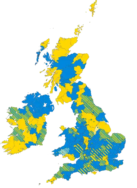 ![]() Colours denote the winning party—as shown in § Results | ||||||||||||||||||||||||||||||||||