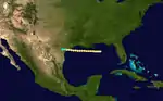 On August 13, a ship encountered a severe hurricane in the eastern Caribbean Sea. Based on observations, it is estimated the hurricane attained winds of 105 mph (165 km/h). There were no reports for several days, although based on continuity it is estimated the storm passed south of Jamaica on August 15. The following day, the hurricane struck the eastern Yucatán Peninsula, washing seven boats ashore. It is estimated to have weakened to a tropical storm while moving over land, although the system re-intensified into a hurricane in the Bay of Campeche. It made its second and final landfall near Veracruz before dissipating on August 18.[2][1]