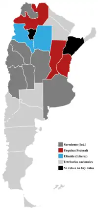 These candidates were, with the exception of Sarmiento, contentious in many circles and provided the new system its first real test. The electoral college met on 12 April 1868, and selected Sarmiento by 79 out of 131 votes, making this the only closely contested race during this era.[2]