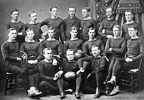 The 1877 Princeton Tigers football team represented the College of New Jersey, then more commonly known as Princeton College, in the 1877 college football season. The team finished with a 2–0–1 record and was retroactively named national champion by the Billingsley Report and as co-national champion by Parke H. Davis.[1] This season was Princeton's seventh national championship and one of 11 in a 13-year period between 1869 and 1881.[2] Princeton played Harvard for the second time, earning its first victory over the Crimson.[3] The captain of the team was W. Earl Dodge.[4]