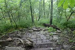 The State Line Marker is a historic boundary marker on the state line between Arkansas and Oklahoma. It is located down a path a short way north of a parking area on Talimena Scenic Drive in Ouachita National Forest, about 17 miles (27 km) northwest of Mena, Arkansas. The marker was originally an octagonal cast iron pipe, with the legend "48 M" on the north face (signifying its marking of the 48th mile), "1877" on the south side (the year of the marker's erection), "ARK" (for Arkansas) on the east side, and "CHOC" (for Choctaw Territory) on the west side. The pipe was mounted in a stone and mortar base installed by the United States Forest Service in 1974. The marker was placed in 1877 following a series of controversial surveys to demarcate the border between Arkansas and what was then Indian Territory.[2]
